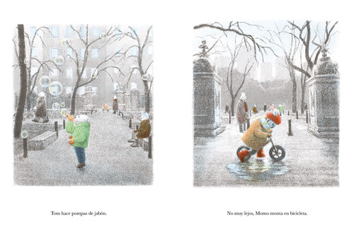 Tom i Momo acaben de mudar-se a un nou barri. Viuen molt a prop, però encara no es coneixen. És Hivern i tots dos surten a passejar amb els seus pares. Cadascú explora el món a la seva manera: amb curiositat, amb timidesa, amb ganes de conèixer algú especial. Encara que encara no s’han trobat, el destí sembla entestat a creuar els seus camins… una vegada i una altra.