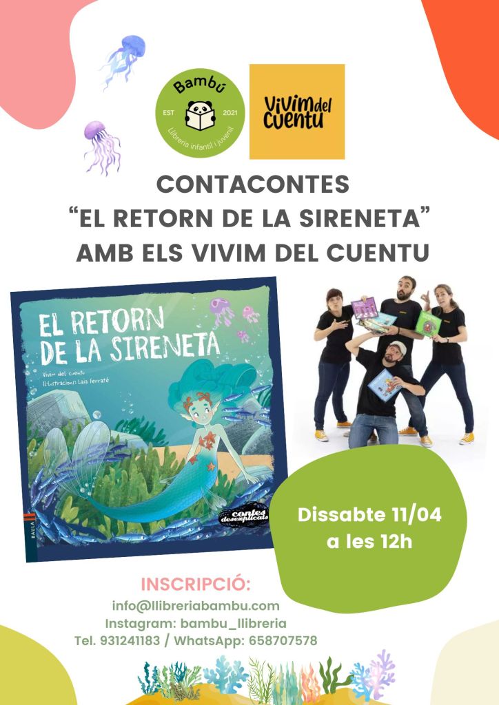 Els Vivim del Cuentu vindran a explicar de manera molt divertida l’últim llibre de la col·lecció dels contes desexplicats “El retorn de la sireneta” amb il·lustracions de Laia Ferraté de l’Editorial Baula.