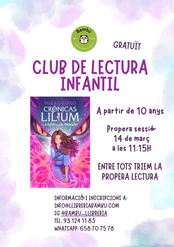 14 de març a les 11.15h: CLUB DE LECTURA INFANTIL DEL LLIBRE “CRÓNICAS DE LILUM. LA FUERZA DEL DRAGÓN” DE PAULA GALLEGO (A PARTIR DE 10 ANYS) EDITORIAL SALAMANDRA