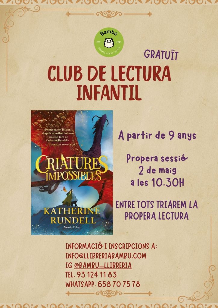 2 de maig a les 10.30h: CLUB DE LECTURA INFANTIL DEL LLIBRE “CRIATURES IMPOSSIBLES” DE KATHERINE RUNDELL (A PARTIR DE 9 ANYS) ESTRELLA POLAR
